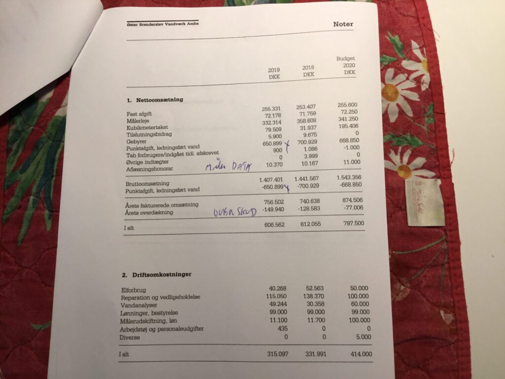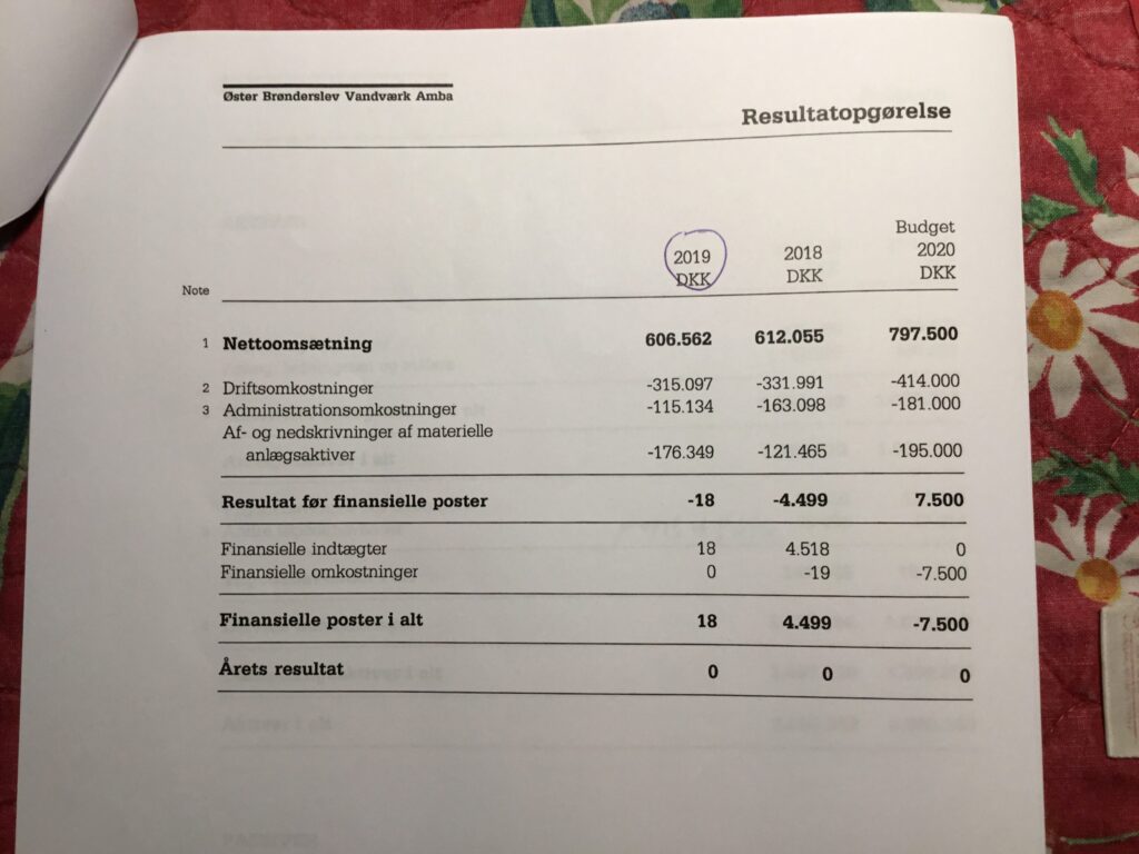 Her er nøgletal fra årsrapport 2019 som blev uddelt til fremmødte til GF. den 15/9. Årsrapport kan til enhver tid fås/ ses hos bestyrlsen i Ø.Brønderslev Vandværk.